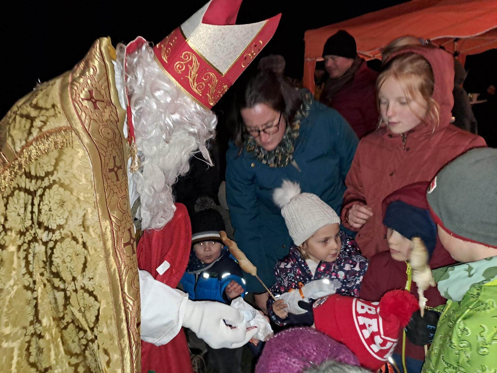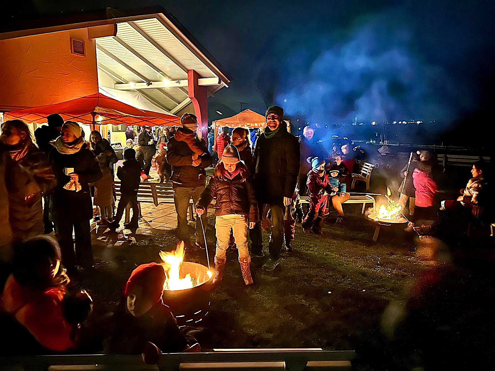 Es war eine rundum gemütliche Stimmung, bei der leckere Maultaschen, Stockbrot und geschmolzene Marshmallows nicht fehlen durften. Besonders die Kinder hatten ihren Spaß, als der Nikolaus mit einem Sack voller Leckereien vorbeikam und die kleinen Gäste strahlen ließ.